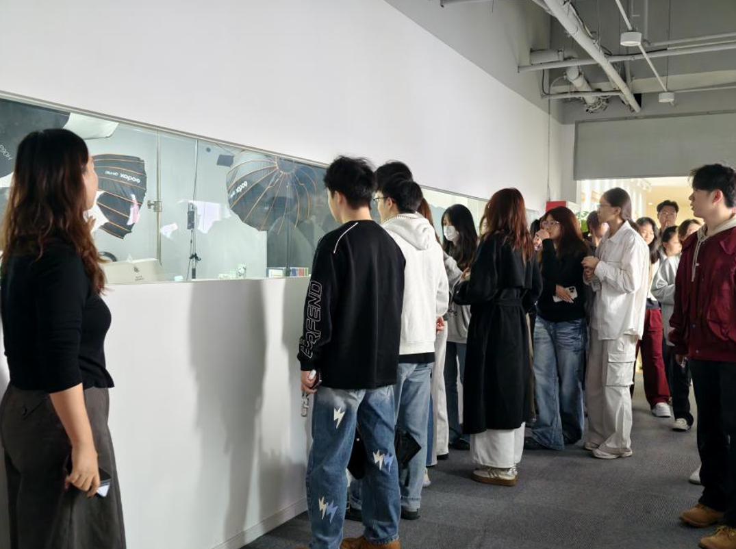 在活动中,师生们深入了解了直播电商的完整生态。在工作人员的引导下,同学们依次参观了公司内部多个风格迥异、功能齐全的直播间,这些直播间服务于美妆、服饰、食品等不同领域的知名品牌。大家观摩了从后台准备、现场直播到数据监控的全流程,对“人、货、场”的直播核心要素有了直观而深刻的认识。