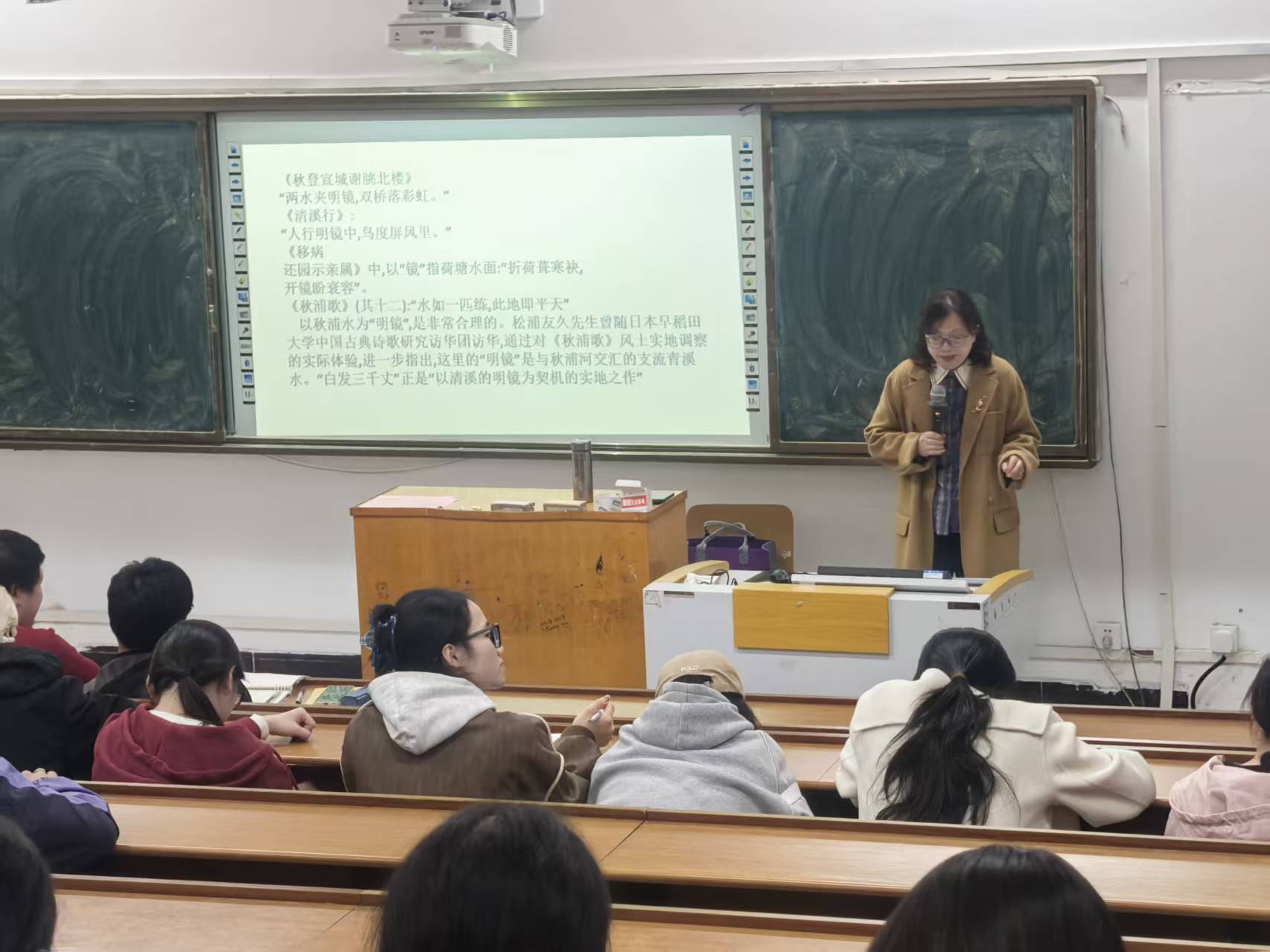在最具启发的“经典案例”剖析环节,袁教授以李白的《秋浦歌》等古典诗歌作品为例,现场演示如何通过问题链引导,打通文本细读与文化阐释的路径。袁教授指出,唯有带着问题阅读,才能形成质疑、激发创新。袁教授的讲解令在场师生感受到问题导向阅读带来的思维突破。
