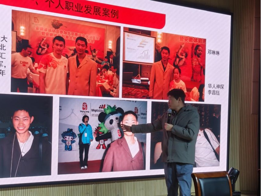 新安晚报资深媒体人刘高威作为此次宣讲会主讲人,以“新闻人职业发展的变与不变”为主题从自身职业经历出发,分享了从业经历与职业发展心得。他以行业变革趋势为着眼点,分析了安徽日报报业集团发展现状及多地媒体合并等行业动态,介绍了新安晚报及旗下“小叶医探”工作室的实习机会,并着重强调学生实习应优先专业对口单位,而非短期兼职,同时要结合自身特长进行职业选择。在职业发展建议中,他提醒学生要掌握视频拍摄剪辑等核心技能,以适应媒体行业整合变革的趋势,并指出要注重诚信与责任感。