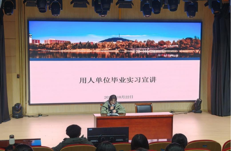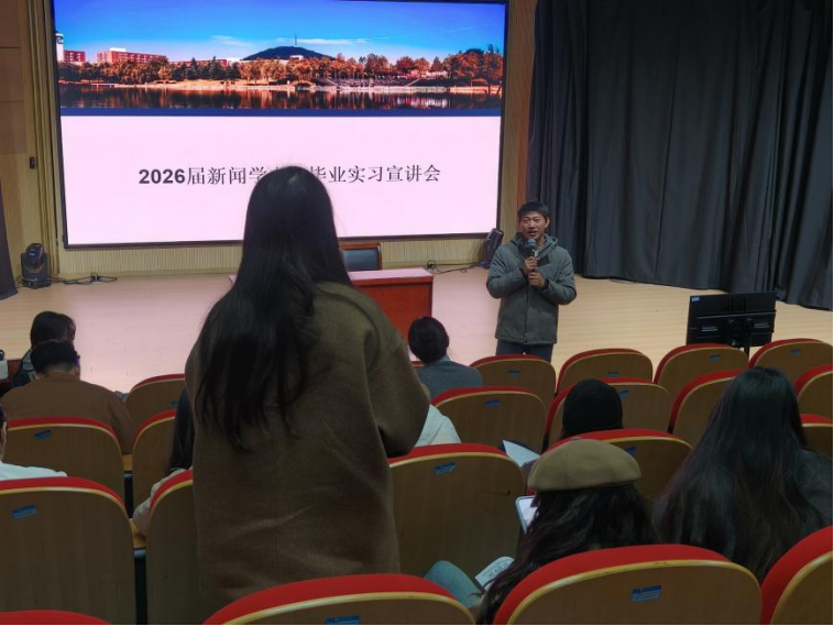 活动伊始,新闻专业教师汪恒宇率先开场,介绍了本次毕业实习动员会暨“皖美赋能”毕业实习讲座及各企业招聘宣讲会活动的核心目的与流程,强调实习是连接校园与职场的关键纽带,鼓励同学们珍惜与企业面对面交流的机会,主动汲取经验、明确规划,为后续活动开展奠定积极基调。