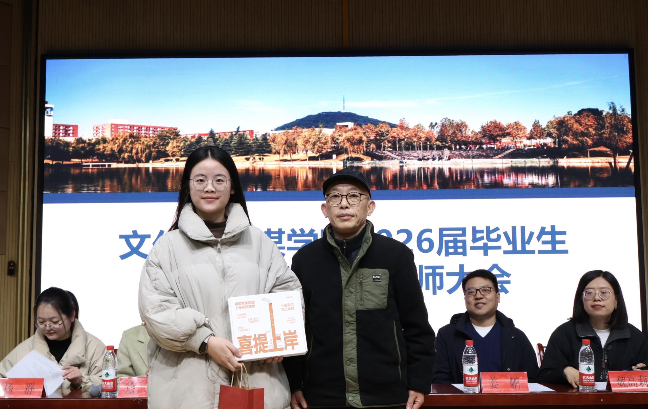 方习文在讲话中寄予厚望:他强调考研是人生重要转折点,希望同学们珍惜冲刺阶段,以严谨态度、科学方法投入复习;同时承诺学院会全力提供支持,做大家坚实的后盾。随后的考研礼包发放环节,满载祝福的物资递到学子手中,现场掌声雷动——这不仅是物质关怀,更是学院的殷切期待。全体人员合影留念,镜头定格下这充满决心与希望的瞬间。