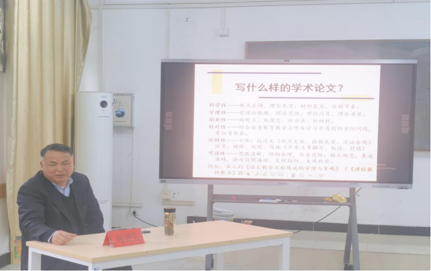 随后,何更生作题为《谈谈学科教学类学术论文写作》的专题分享。本次分享围绕学术论文写作与教学论文写作展开,何更生着重梳理介绍了该类论文写作的核心要点,阐明学科教学作为教育学的重要分支,覆盖语文教学、数学教学等多个研究领域;在此基础上,他逐一分析了该领域适配的论文撰写方向、论文发表的规范要求以及成功投稿的关键技巧,为一线教师开展论文写作与投稿发表提供了具有针对性的实用指导。