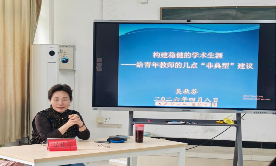 首先,吴秋芬作题为《构建稳健的学术生涯——给青年教师的几点“非典型”建议》的专题分享,分享围绕“如何使教师学术之路更具生命力”这一核心主题展开,为青年教师提供了具有针对性的发展建议,强调青年教师应当平衡教学与科研的关系,提前做好个人学术规划,积极参与各类学术活动,始终保持对学术研究的探索热情,推动自身学术生涯实现稳健发展。