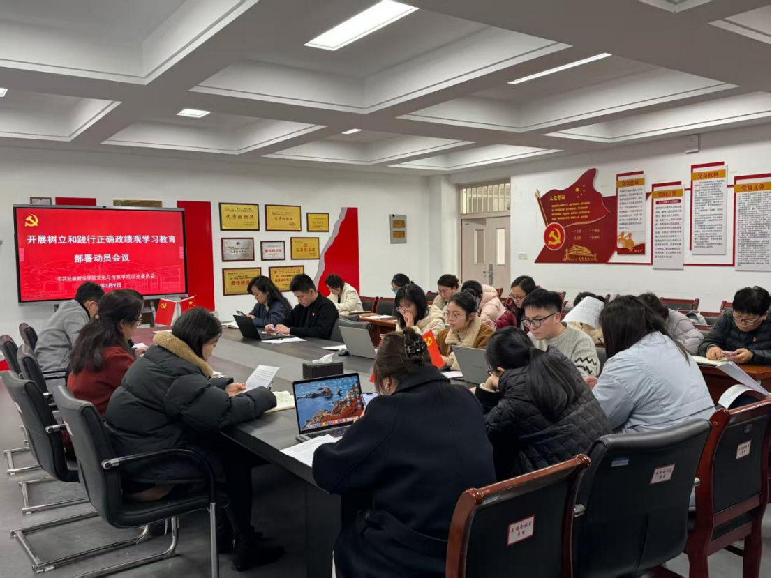 本网讯 (通讯员:徐昕 邹佳欣)3月9日,文化与传媒学院党总支召开树立和践行正确政绩观学习教育部署动员会议,深入学习贯彻习近平总书记关于树立和践行正确政绩观的重要指示批示精神,对学院学习教育各项工作进行了专题动员、系统部署。党总支书记洪玉主持会议并作动员讲话,院党总支委员及各党支部书记参加会议。