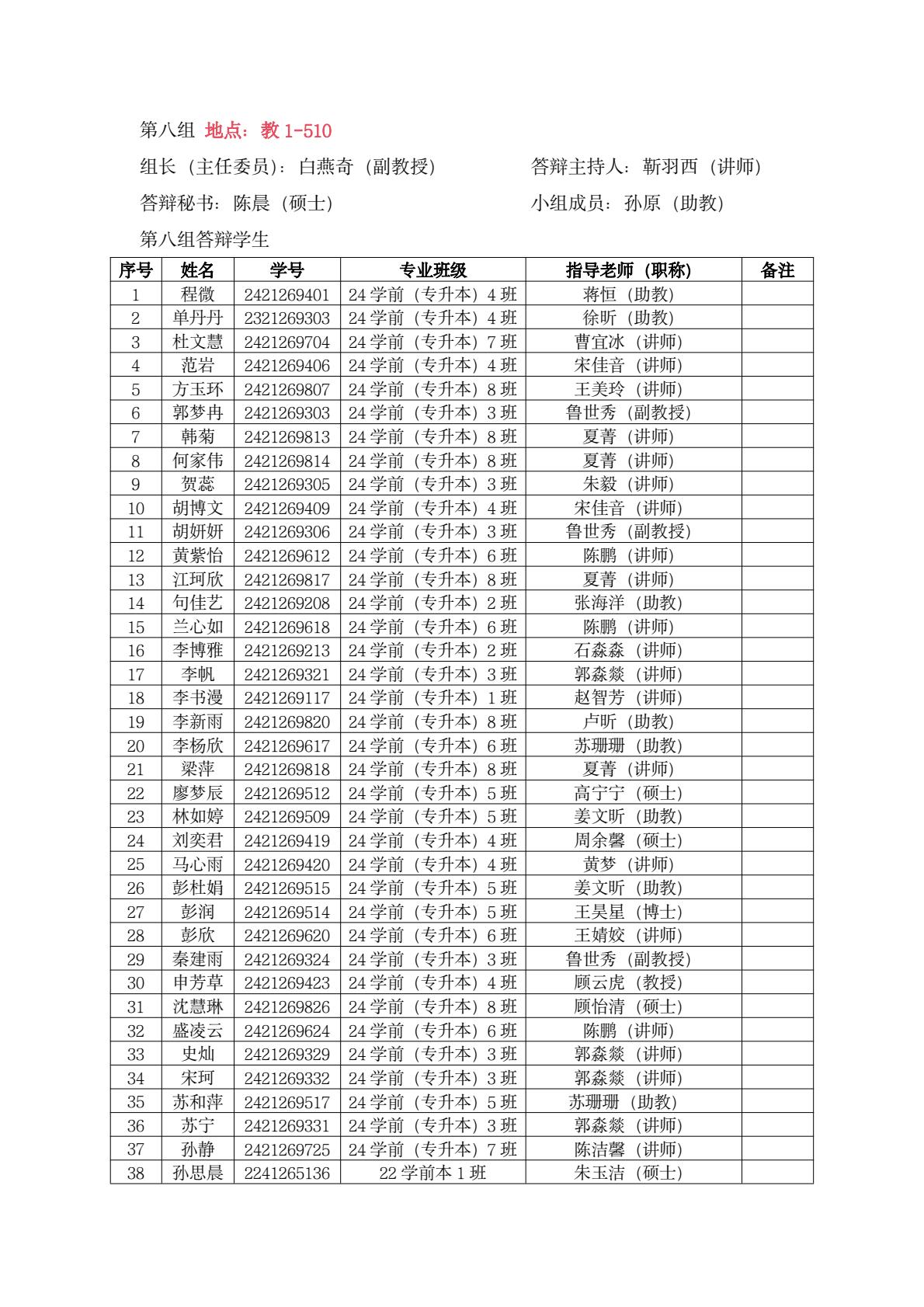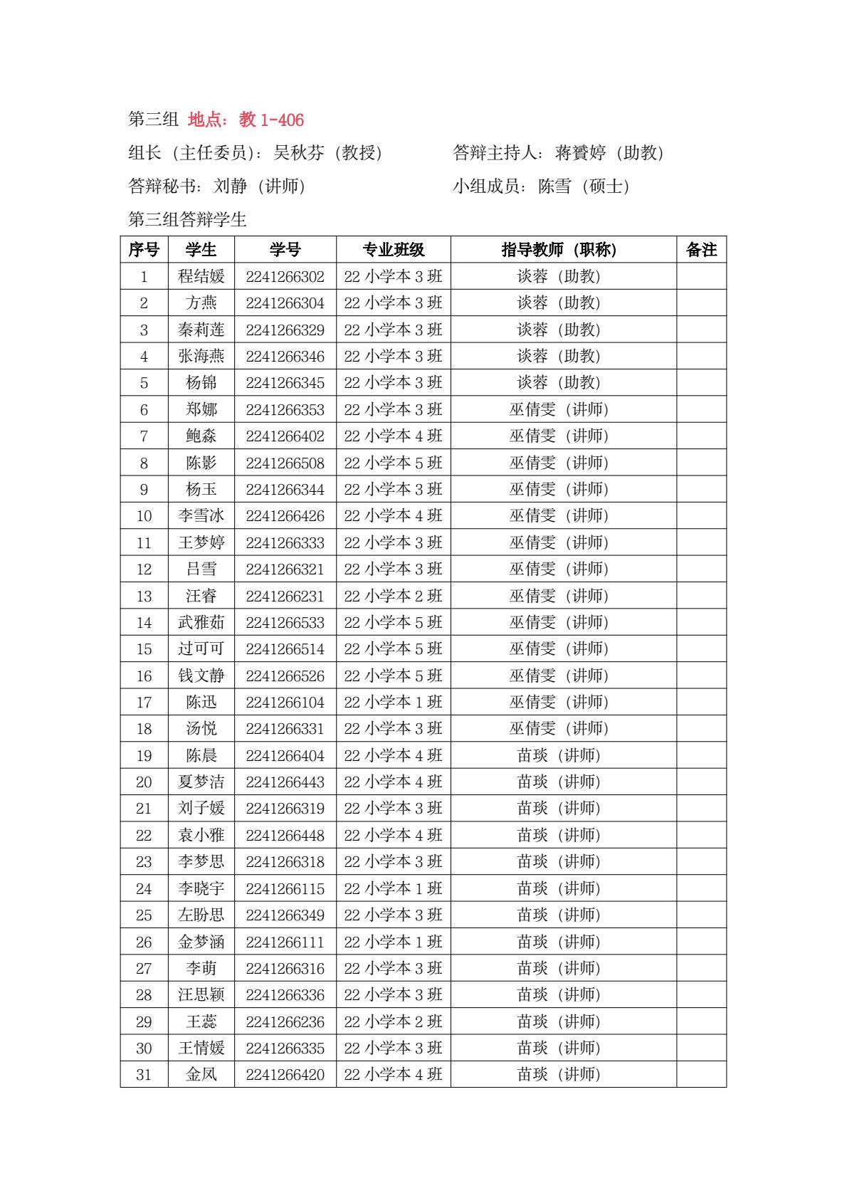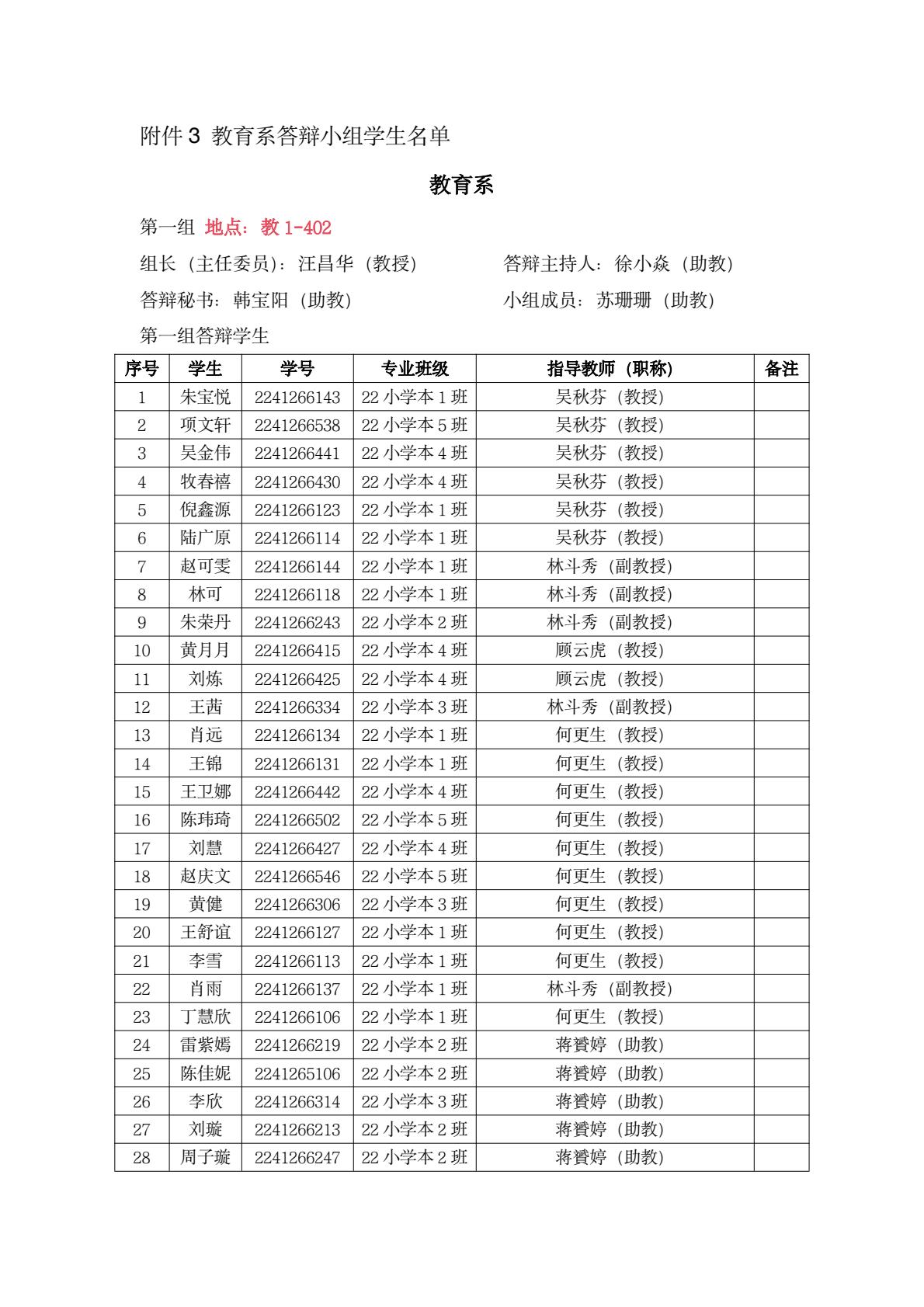 教育系答辩小组学生名单