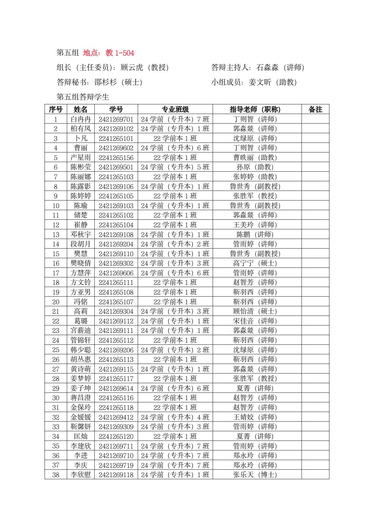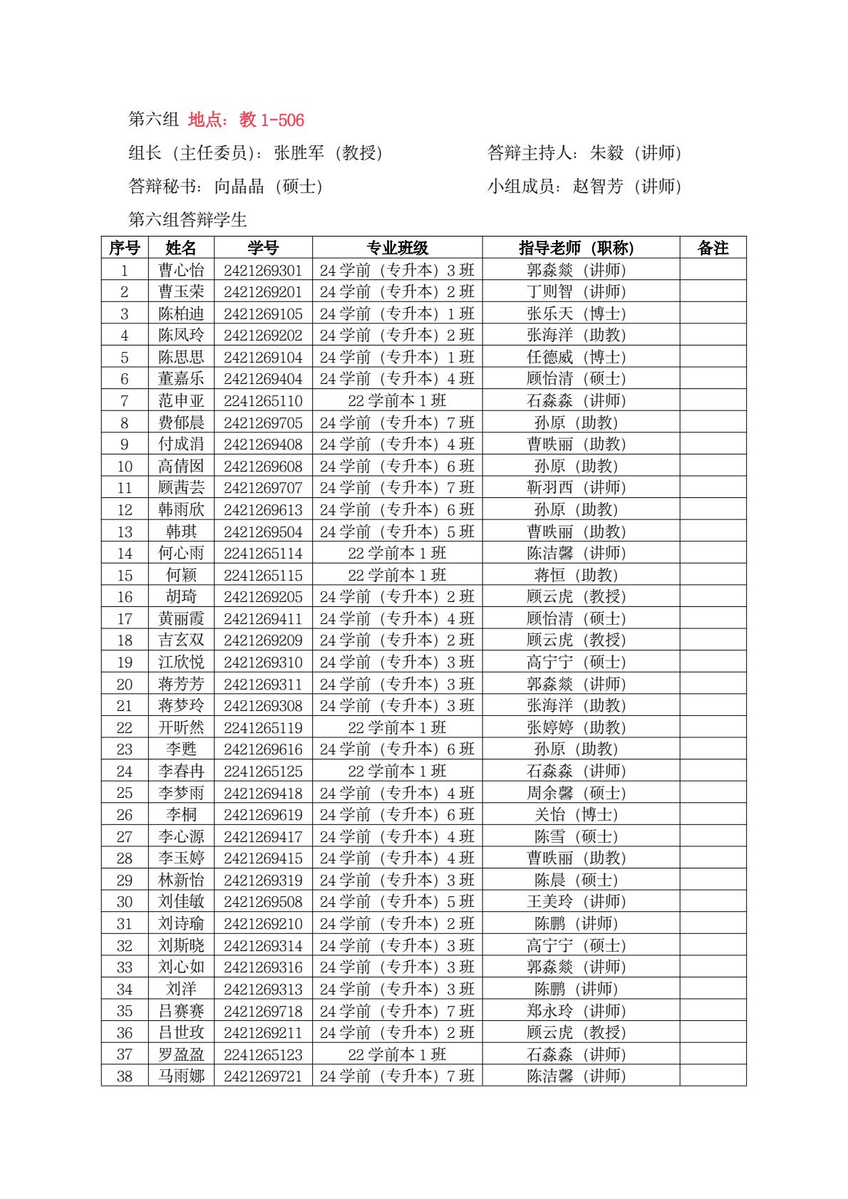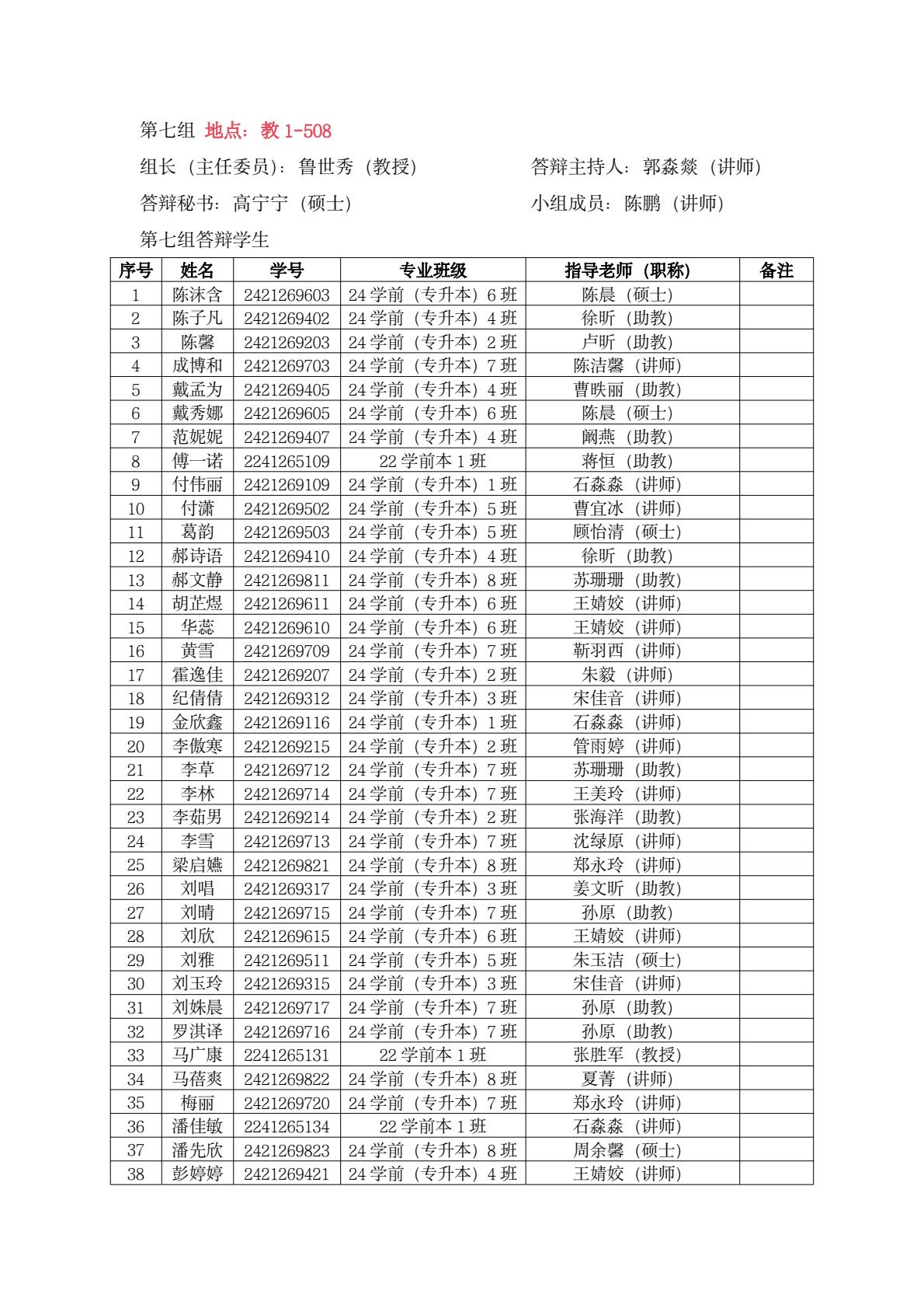 教育系答辩小组学生名单