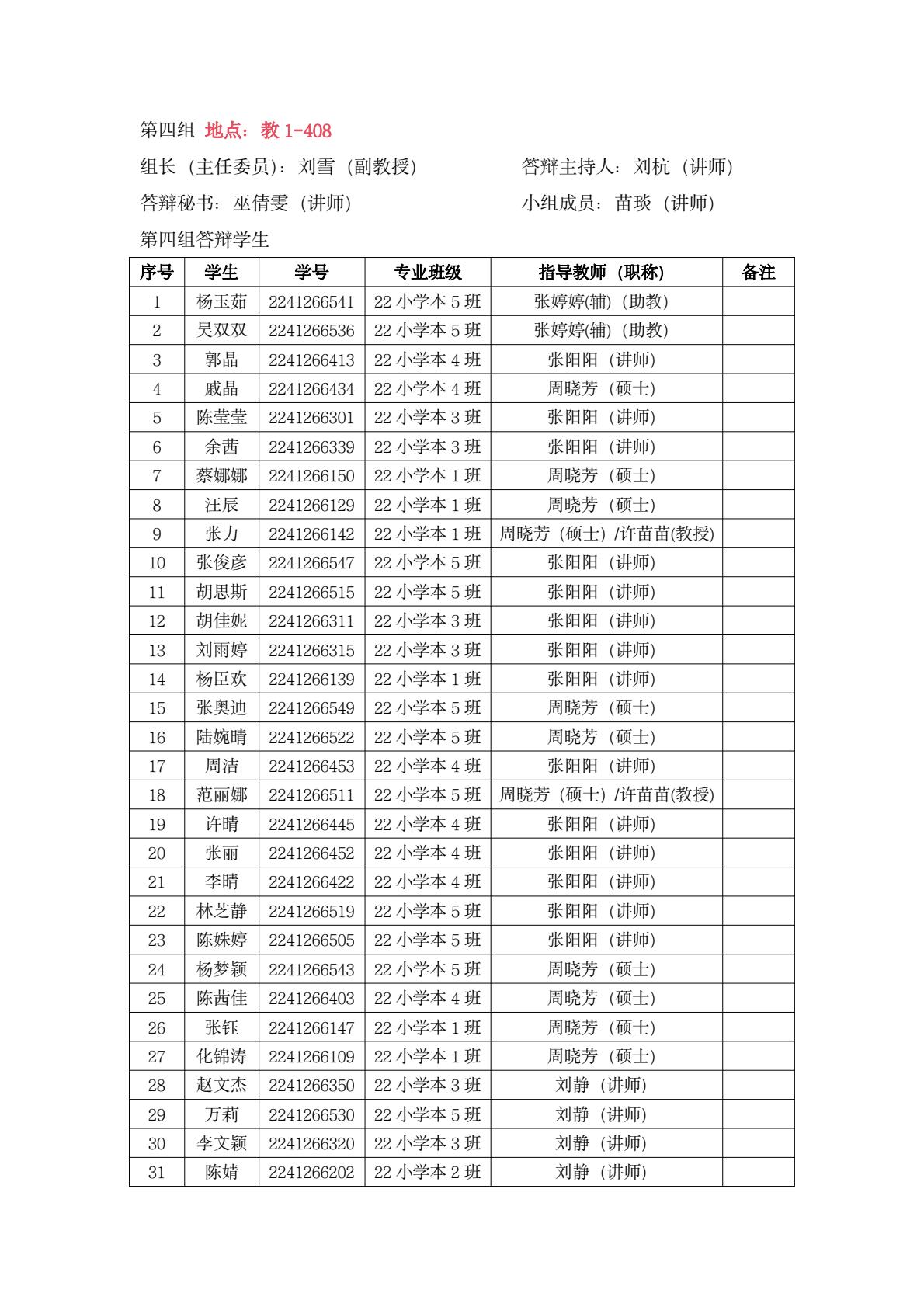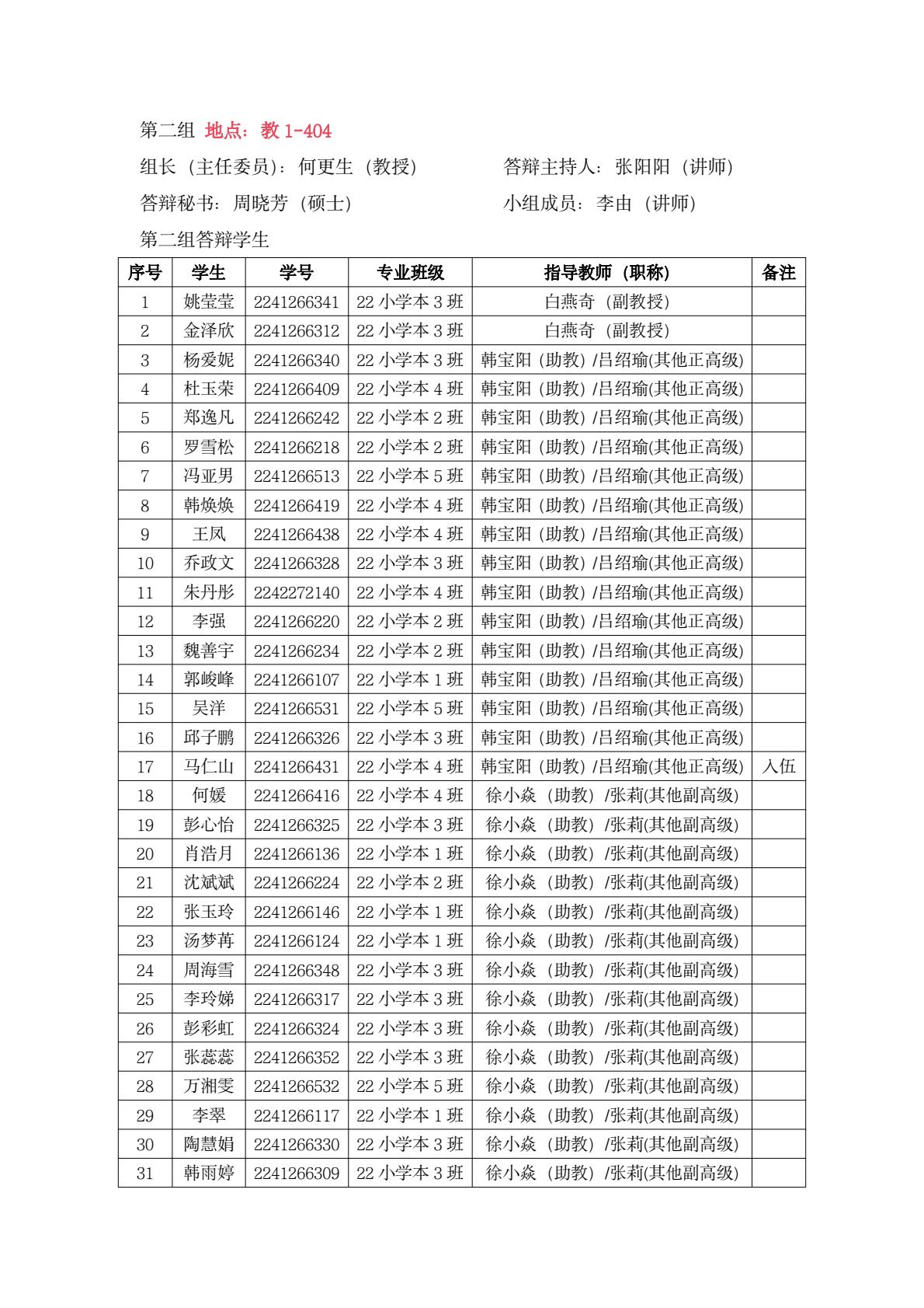中文系答辩小组学生名单