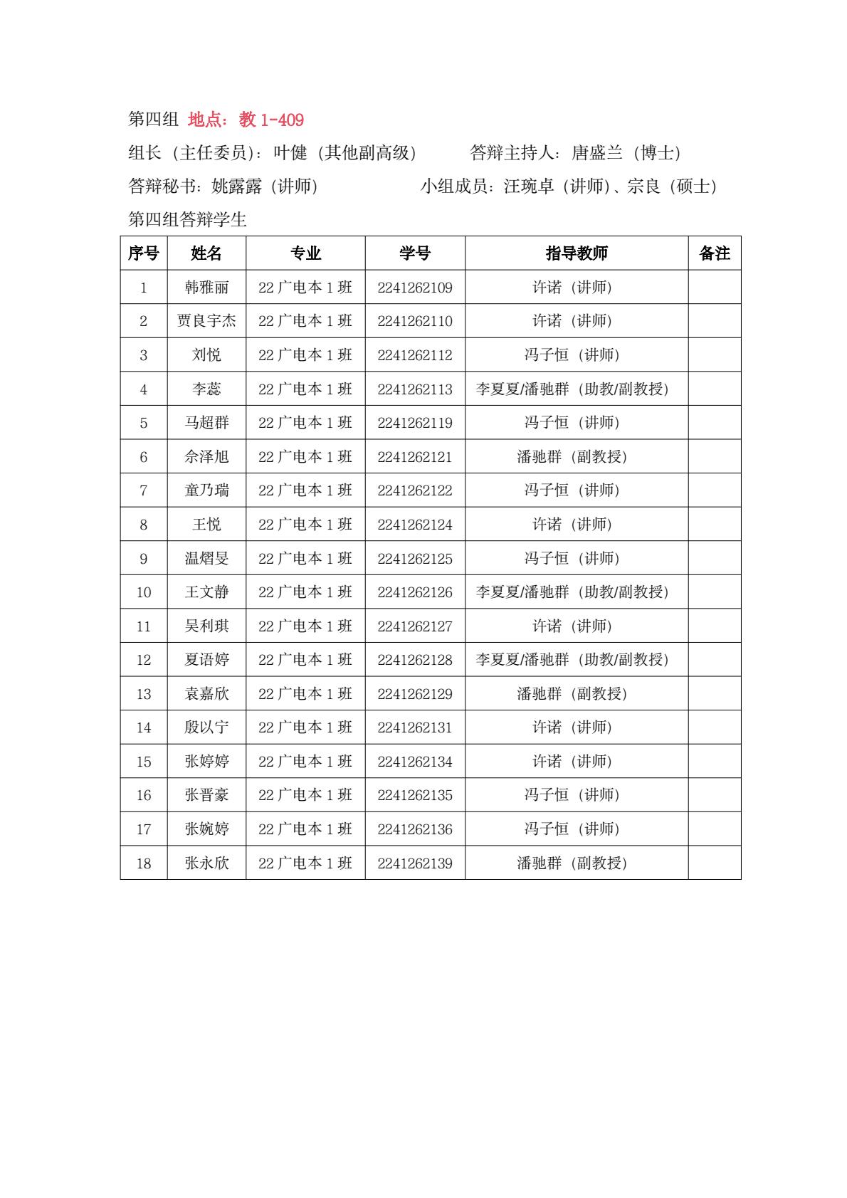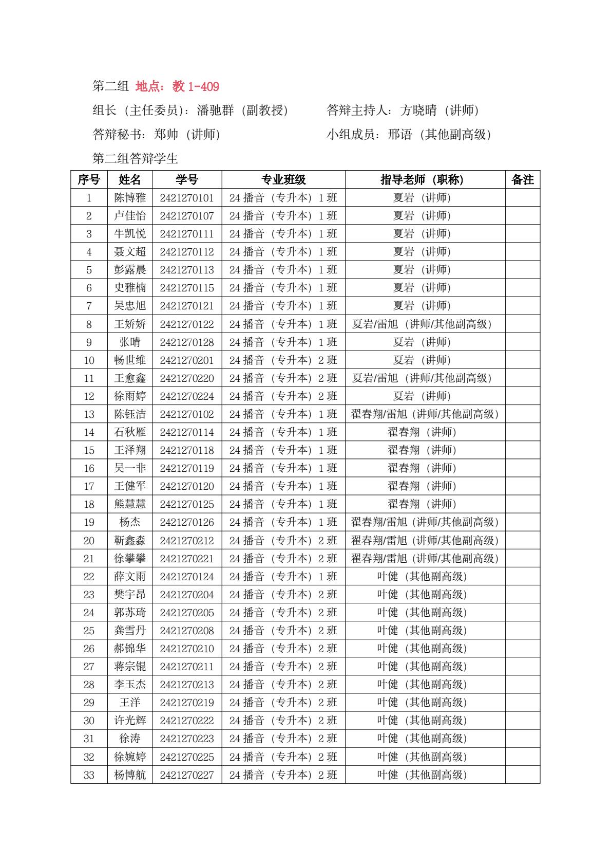 新闻系答辩小组学生名单