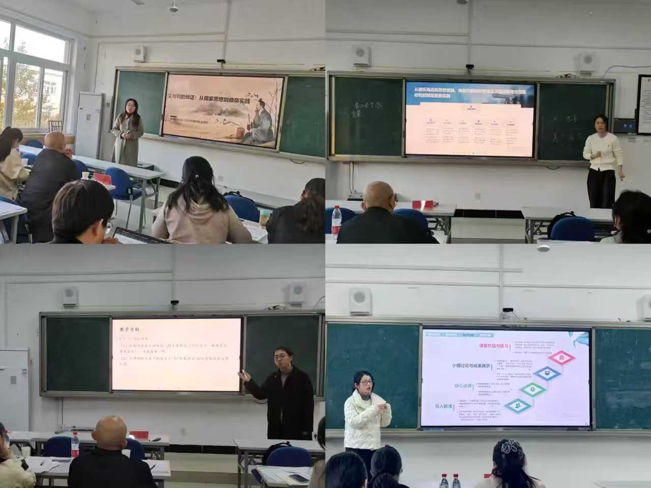大赛分为5分钟说课和15分钟无生课堂教学展示两个环节,参赛教师立足学科特色,灵活运用雨课堂等智慧教学工具,在教学内容、教学方法、课堂互动等方面展现出多项创新亮点。参赛教师普遍注重将思政元素与专业知识教学自然融合,体现了“课程思政”作为教学基本要求的自觉意识,展现了在“知识传授与价值引领相统一”方面的深入思考与实践探索,进一步彰显了学院教师扎实的教学功底与立德树人的责任担当。