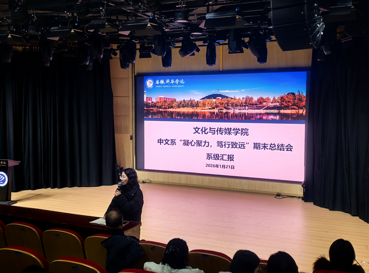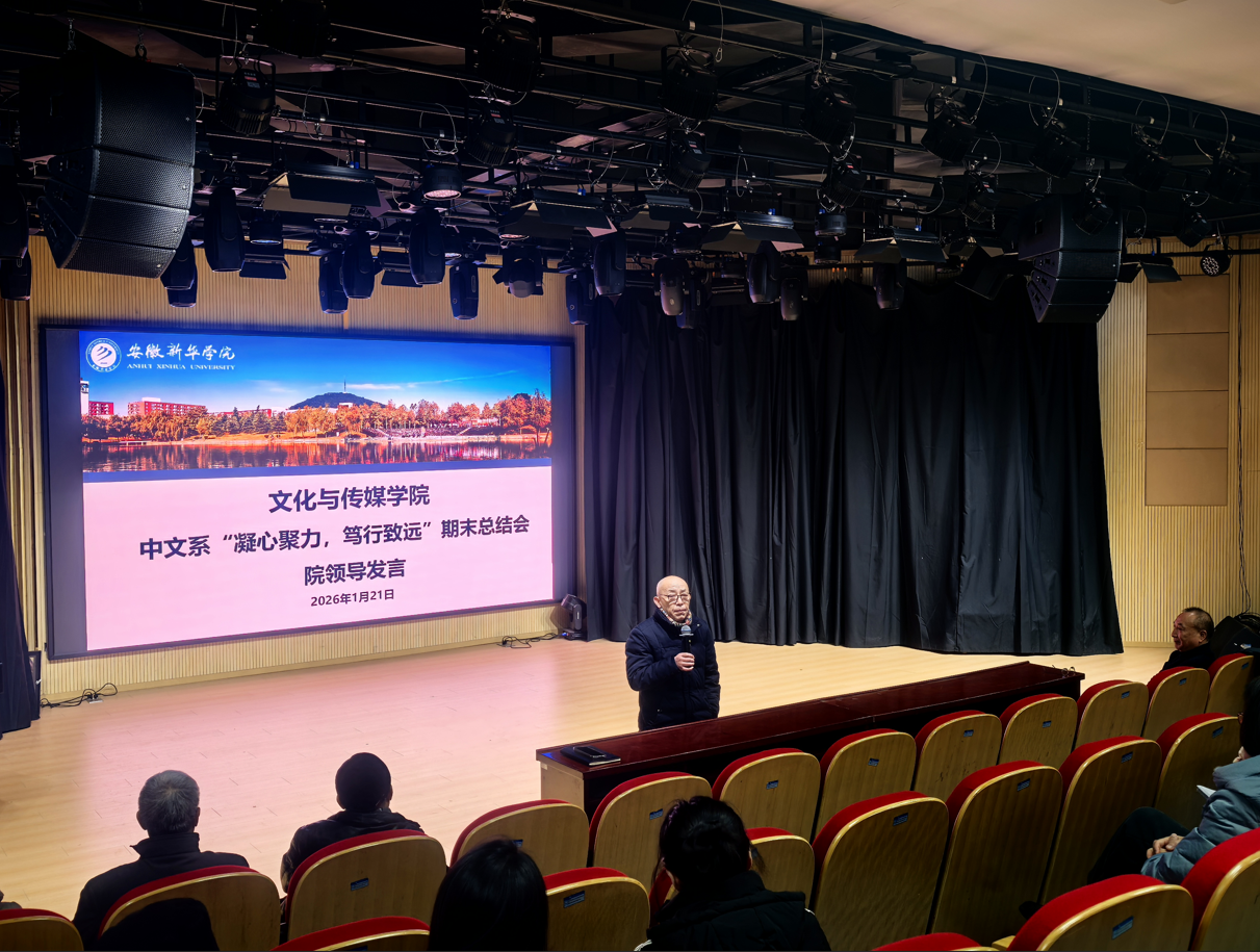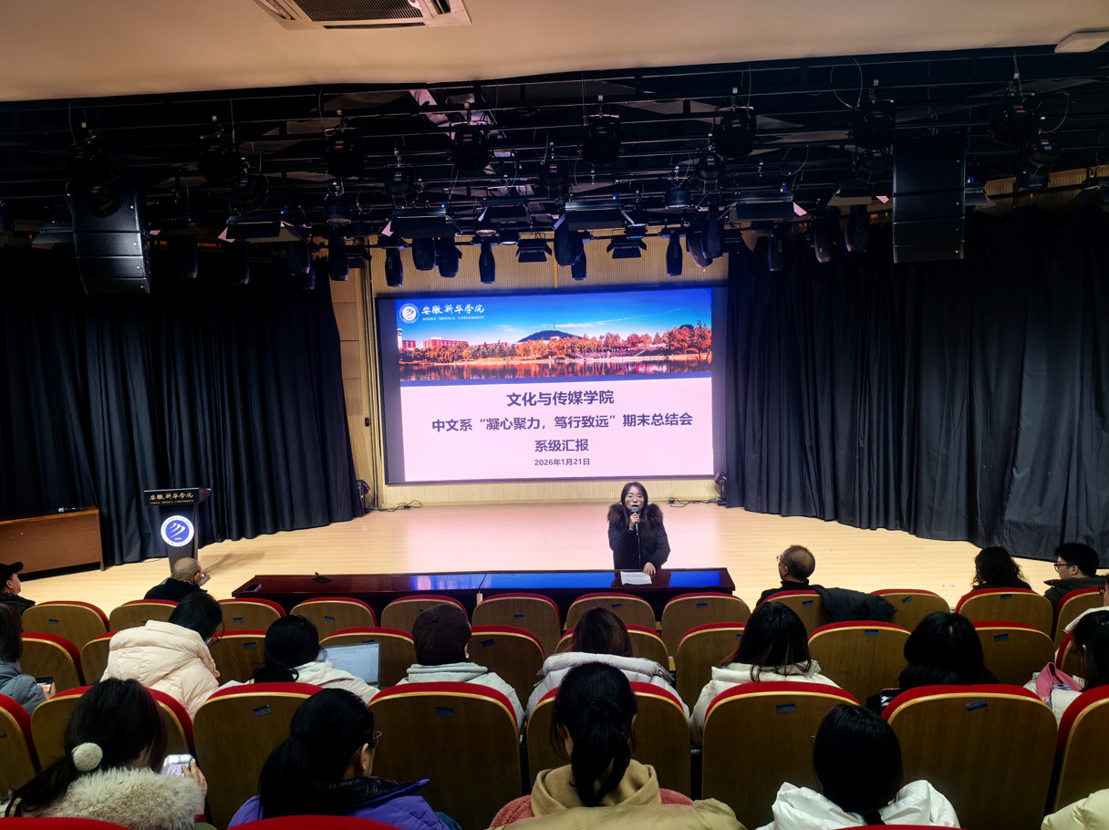 本网讯(通讯员:郑敏)2026年1月21日上午,文化与传媒学院中文系于文传演播厅举行以“凝心聚力,笃行致远”为主题的期末工作总结会。会议由中文系主任朱玉教授主持,中文系教师参会,文化与传媒学院院长方习文教授莅临指导。