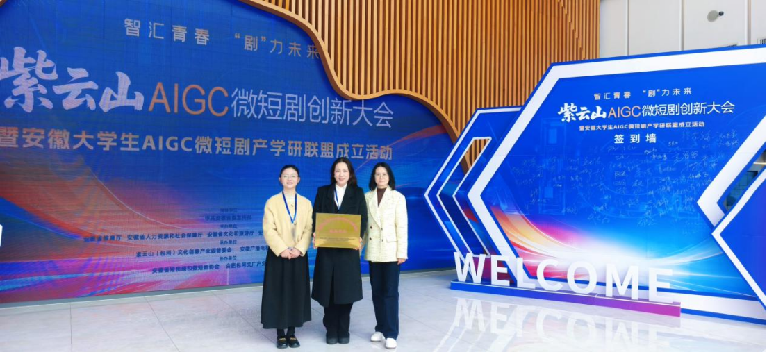 本网讯(通讯员 姚露露)3月24日上午,紫云山AIGC微短剧创新大会暨安徽大学生AIGC微短剧产学研联盟成立活动在合肥市紫云山(包河)文化创意产业园成功举办 。我校教务处副处长施伶俐、文化与传媒学院产学研副院长邢语及戏剧影视系主任助理姚露露受邀出席本次盛会。活动现场,我校正式获牌,成为全省首批加入该联盟的30所高校之一。