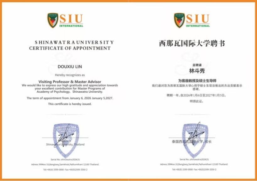 教学内容围绕“认知心理学研究进展及应用”展开,采用理论讲解与实操体验相结合的方式,系统梳理了认知心理学的起源、研究方法及前沿议题,实操环节则聚焦具身认知与梦工作坊。课程整体氛围活跃,学生反馈学习体验深刻、收获丰富,既夯实了认知心理学的基础理论与研究前沿知识,也通过具身认知与梦研究的实操工作坊拓展了学术视野,为硕士论文撰写提供了有益参考。同时,林斗秀获聘为泰国西那瓦国际大学“客座教授及硕士生导师”。