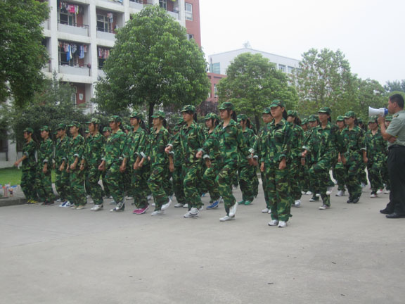 军训开始了。“排队了”,“一连的集合”,不久男生队整齐的陈列出来,紧接着,二连三连女生也豪不逊色。军训教官还未就位,就迎来一阵阵整齐嘹亮的口号 “教官好”。随后又是嘹亮的报数声,着实让人心潮澎湃。就位后,男生连这边随着教官的一声声口令,做着这几天学习的动作,“立正”,“稍息”,“向左转”等。动作的娴熟着实让人佩服,但这些在教官眼里还差很远,挑战还在后面。女生连这边站着军姿,身体笔直,一脸严肃,时间已经过了半个小时,整齐的队列中没有一个人打报告,没有一个人叫苦叫累,果然是巾帼不让须眉。