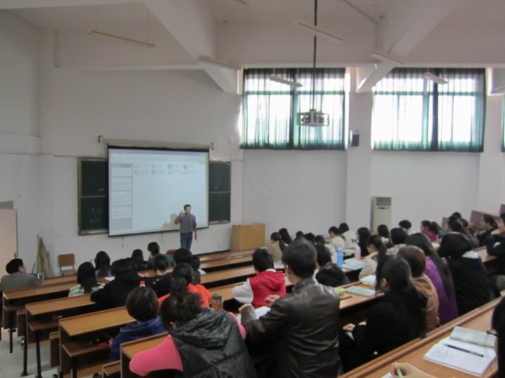 华睿以自己从事记者时摄影角度的案例为开始,主要就“角度决定价值”和民办高校新闻专业学生如何在求职和工作胜出做了讲解。关于新闻采写如何选择角度,华睿用《高新区的名片变了》和《长江炸礁,鱼不惊》等贴近生活而又典型的新闻事例和图片归纳出把事件转化为背景、从平常中发现非常、在现场抓住角度等五点选择角度的方法。以新鲜和贴近生活的事例帮助学生更好的理解新闻采写中角度的重要性。在谈到民办高校的新闻毕业生如何在求职和工作中胜出时,华睿说道民办高校新闻专业的课程设置与新闻媒体的需求对接的很紧密,民办高校的学生应该改变认知角度,由大众媒体转向内部媒体,有传统行业转向新兴行业。不要把目光局限在报纸、广播、电视等新闻工作领域,还有更多商业性的网站和杂志需要具有新闻从业能力的人员。华睿对于民办高校新闻类专业学生就业和创业的意见赢得了阵阵掌声。