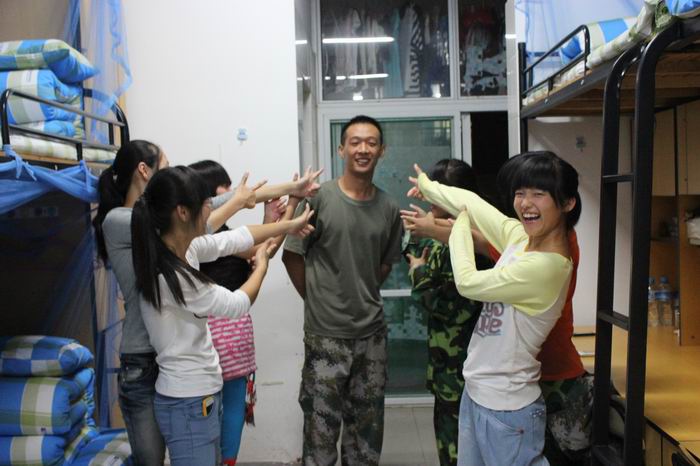 边等待边商量着用谁的手机播放进行曲的音乐,等到教官进入宿舍的时候给教官一个惊喜。“我们教官人很正派,我们在他身上看到一种严谨、踏实的人生态度,这是我们值得学习的地方,和教官相处的这几天我们感到很愉快。教官还说如果我们在才艺表演、内务检查等表现优秀,对我们是有奖励的,所以我们解散一回来就在打扫卫生和整理床铺。再加上放歌曲和等候老师这个环节,希望可以给教官们留下一个好印象。我们宿舍不仅需要干净整洁的环境也需要对待他人的礼貌态度。”12级新闻采编与制作专业的学生朱琴琴说道。