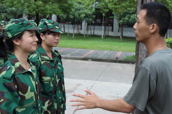六营二连的姑娘们告诉笔者,为期一周以来的训练苦中有乐,她们所练习的动作也是循序渐进的。先是最基本的站军姿,然后是抬头、挺胸、收腹,齐步走、踏步走······每一个动作,他们都力求到位。即使全身酸疼,也坚持不懈的训练着。