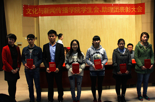 本网讯(文/范丽丽)为总结文化与新闻传播学院学生组织上一学年的工作状况,提升各组织学生干部工作的积极性和创造性,表彰学生工作突出的团体及个人,4月8日中午,文化与新闻传播学院第五届学生会、助理团表彰大会在文传演播厅举行。文传学院行政副院长王帆、行政秘书马兰、学管秘书董国义莅临此次表彰大会,文传院学生会、助理团全体成员到场。